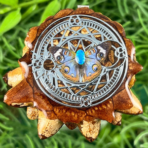 Our handmade pendants are crafted from sustainably wild-gathered Knobcone Pinecones. Every Aura Pinecone is carefully dried, aged, and cross-sectioned before being meticulously designed.