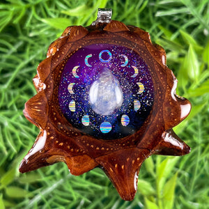 Our handmade pendants are crafted from sustainably wild-gathered Knobcone Pinecones. Every Aura Pinecone is carefully dried, aged, and cross-sectioned before being meticulously designed.