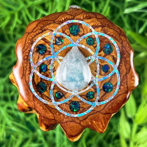 Our handmade pendants are crafted from sustainably wild-gathered Knobcone Pinecones. Every Aura Pinecone is carefully dried, aged, and cross-sectioned before being meticulously designed.