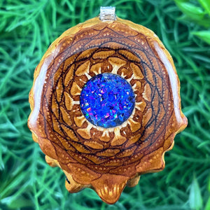 Our handmade pendants are crafted from sustainably wild-gathered Knobcone Pinecones. Every Aura Pinecone is carefully dried, aged, and cross-sectioned before being meticulously designed.