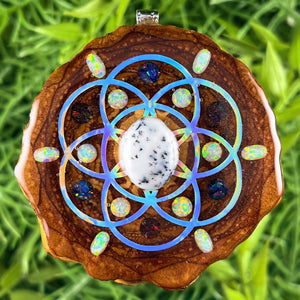 Our handmade pendants are crafted from sustainably wild-gathered Knobcone Pinecones. Every Aura Pinecone is carefully dried, aged, and cross-sectioned before being meticulously designed.