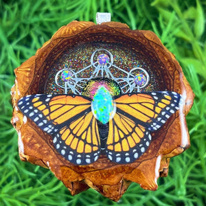 Our handmade pendants are crafted from sustainably wild-gathered Knobcone Pinecones. Every Aura Pinecone is carefully dried, aged, and cross-sectioned before being meticulously designed.