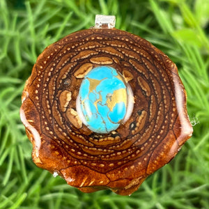 Our handmade pendants are crafted from sustainably wild-gathered Knobcone Pinecones. Every Aura Pinecone is carefully dried, aged, and cross-sectioned before being meticulously designed.