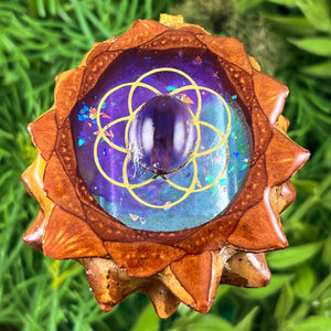 Our handmade pendants are crafted from sustainably wild-gathered Knobcone Pinecones. Every Aura Pinecone is carefully dried, aged, and cross-sectioned before being meticulously designed.