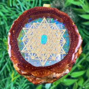 Clouds with Spiny Oyster Turquoise & Opal with Seed of Life