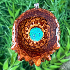 Our handmade pendants are crafted from sustainably wild-gathered Knobcone Pinecones. Every Aura Pinecone is carefully dried, aged, and cross-sectioned before being meticulously designed.