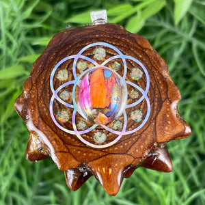 Spiny Oyster Turquoise with Crushed Opal & Seed of Life