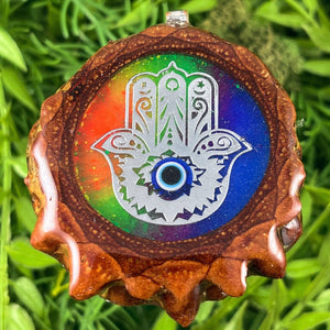 Our handmade pendants are crafted from sustainably wild-gathered Knobcone Pinecones. Every Aura Pinecone is carefully dried, aged, and cross-sectioned before being meticulously designed.