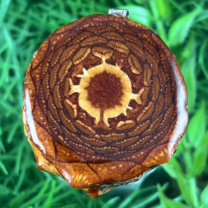 Our handmade pendants are crafted from sustainably wild-gathered Knobcone Pinecones. Every Aura Pinecone is carefully dried, aged, and cross-sectioned before being meticulously designed.