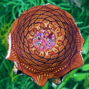 Our handmade pendants are crafted from sustainably wild-gathered Knobcone Pinecones. Every Aura Pinecone is carefully dried, aged, and cross-sectioned before being meticulously designed.