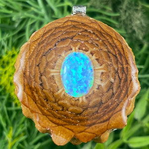 Our handmade pendants are crafted from sustainably wild-gathered Knobcone Pinecones. Every Aura Pinecone is carefully dried, aged, and cross-sectioned before being meticulously designed.