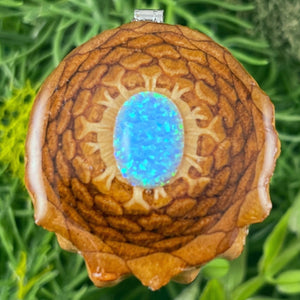 Our handmade pendants are crafted from sustainably wild-gathered Knobcone Pinecones. Every Aura Pinecone is carefully dried, aged, and cross-sectioned before being meticulously designed.