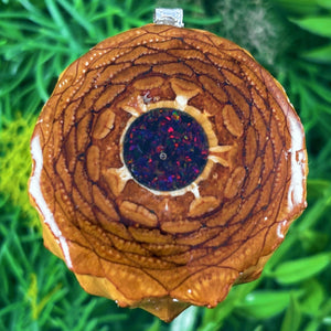 Our handmade pendants are crafted from sustainably wild-gathered Knobcone Pinecones. Every Aura Pinecone is carefully dried, aged, and cross-sectioned before being meticulously designed.