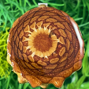 Our handmade pendants are crafted from sustainably wild-gathered Knobcone Pinecones. Every Aura Pinecone is carefully dried, aged, and cross-sectioned before being meticulously designed.
