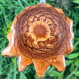 Our handmade pendants are crafted from sustainably wild-gathered Knobcone Pinecones. Every Aura Pinecone is carefully dried, aged, and cross-sectioned before being meticulously designed.