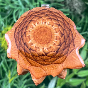 Our handmade pendants are crafted from sustainably wild-gathered Knobcone Pinecones. Every Aura Pinecone is carefully dried, aged, and cross-sectioned before being meticulously designed.