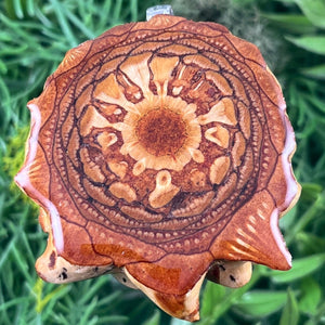 Our handmade pendants are crafted from sustainably wild-gathered Knobcone Pinecones. Every Aura Pinecone is carefully dried, aged, and cross-sectioned before being meticulously designed.