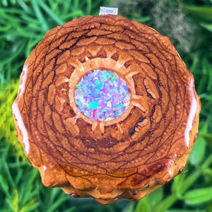Our handmade pendants are crafted from sustainably wild-gathered Knobcone Pinecones. Every Aura Pinecone is carefully dried, aged, and cross-sectioned before being meticulously designed.