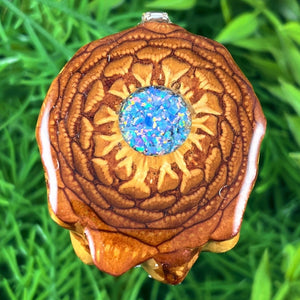 Our handmade pendants are crafted from sustainably wild-gathered Knobcone Pinecones. Every Aura Pinecone is carefully dried, aged, and cross-sectioned before being meticulously designed.