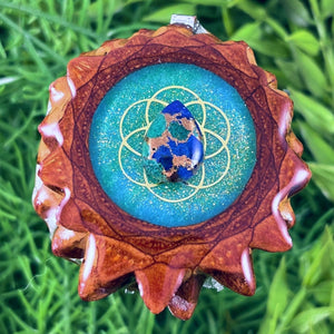 Our handmade pendants are crafted from sustainably wild-gathered Knobcone Pinecones. Every Aura Pinecone is carefully dried, aged, and cross-sectioned before being meticulously designed.