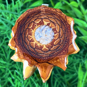 Our handmade pendants are crafted from sustainably wild-gathered Knobcone Pinecones. Every Aura Pinecone is carefully dried, aged, and cross-sectioned before being meticulously designed.
