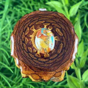 Our handmade pendants are crafted from sustainably wild-gathered Knobcone Pinecones. Every Aura Pinecone is carefully dried, aged, and cross-sectioned before being meticulously designed.