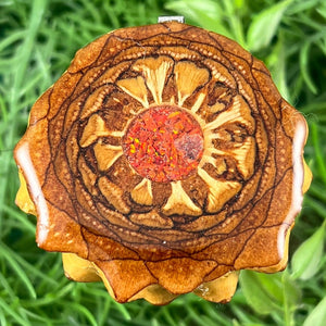 Our handmade pendants are crafted from sustainably wild-gathered Knobcone Pinecones. Every Aura Pinecone is carefully dried, aged, and cross-sectioned before being meticulously designed.