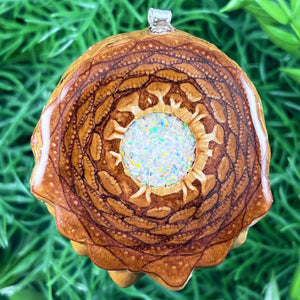 Our handmade pendants are crafted from sustainably wild-gathered Knobcone Pinecones. Every Aura Pinecone is carefully dried, aged, and cross-sectioned before being meticulously designed.