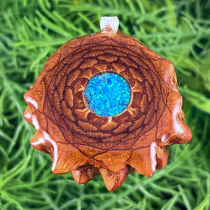 Our handmade pendants are crafted from sustainably wild-gathered Knobcone Pinecones. Every Aura Pinecone is carefully dried, aged, and cross-sectioned before being meticulously designed.