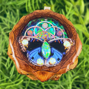 Our handmade pendants are crafted from sustainably wild-gathered Knobcone Pinecones. Every Aura Pinecone is carefully dried, aged, and cross-sectioned before being meticulously designed.