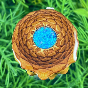 Our handmade pendants are crafted from sustainably wild-gathered Knobcone Pinecones. Every Aura Pinecone is carefully dried, aged, and cross-sectioned before being meticulously designed.