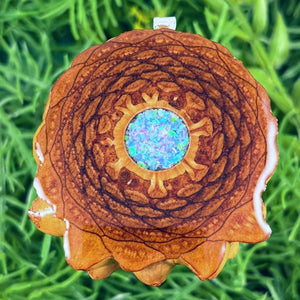 Our handmade pendants are crafted from sustainably wild-gathered Knobcone Pinecones. Every Aura Pinecone is carefully dried, aged, and cross-sectioned before being meticulously designed.