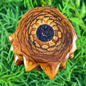 Our handmade pendants are crafted from sustainably wild-gathered Knobcone Pinecones. Every Aura Pinecone is carefully dried, aged, and cross-sectioned before being meticulously designed.