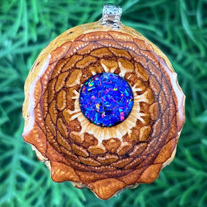 Our handmade pendants are crafted from sustainably wild-gathered Knobcone Pinecones. Every Aura Pinecone is carefully dried, aged, and cross-sectioned before being meticulously designed.