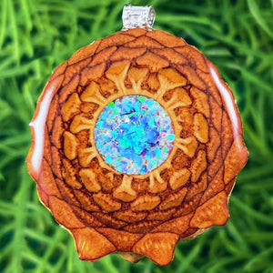 Our handmade pendants are crafted from sustainably wild-gathered Knobcone Pinecones. Every Aura Pinecone is carefully dried, aged, and cross-sectioned before being meticulously designed.
