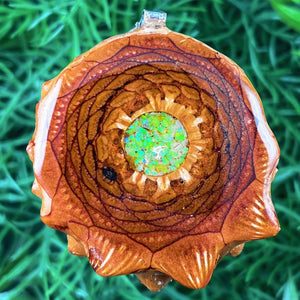 Our handmade pendants are crafted from sustainably wild-gathered Knobcone Pinecones. Every Aura Pinecone is carefully dried, aged, and cross-sectioned before being meticulously designed.