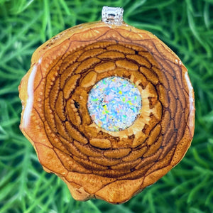 Our handmade pendants are crafted from sustainably wild-gathered Knobcone Pinecones. Every Aura Pinecone is carefully dried, aged, and cross-sectioned before being meticulously designed.