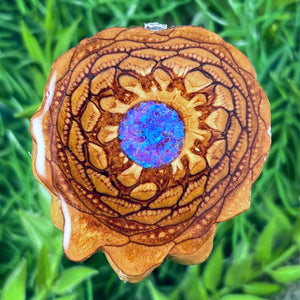 Our handmade pendants are crafted from sustainably wild-gathered Knobcone Pinecones. Every Aura Pinecone is carefully dried, aged, and cross-sectioned before being meticulously designed.
