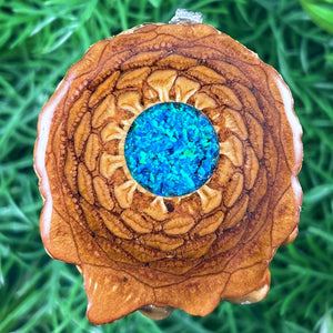 Our handmade pendants are crafted from sustainably wild-gathered Knobcone Pinecones. Every Aura Pinecone is carefully dried, aged, and cross-sectioned before being meticulously designed.