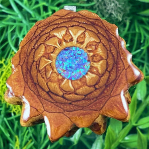 Our handmade pendants are crafted from sustainably wild-gathered Knobcone Pinecones. Every Aura Pinecone is carefully dried, aged, and cross-sectioned before being meticulously designed.