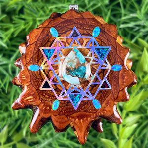 Our handmade pendants are crafted from sustainably wild-gathered Knobcone Pinecones. Every Aura Pinecone is carefully dried, aged, and cross-sectioned before being meticulously designed.