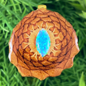 Our handmade pendants are crafted from sustainably wild-gathered Knobcone Pinecones. Every Aura Pinecone is carefully dried, aged, and cross-sectioned before being meticulously designed.