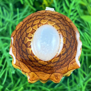 Our handmade pendants are crafted from sustainably wild-gathered Knobcone Pinecones. Every Aura Pinecone is carefully dried, aged, and cross-sectioned before being meticulously designed.