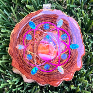Our handmade pendants are crafted from sustainably wild-gathered Knobcone Pinecones. Every Aura Pinecone is carefully dried, aged, and cross-sectioned before being meticulously designed.