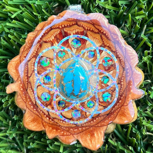 Our handmade pendants are crafted from sustainably wild-gathered Knobcone Pinecones. Every Aura Pinecone is carefully dried, aged, and cross-sectioned before being meticulously designed.