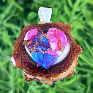 Our handmade pendants are crafted from sustainably wild-gathered Knobcone Pinecones. Every Aura Pinecone is carefully dried, aged, and cross-sectioned before being meticulously designed.