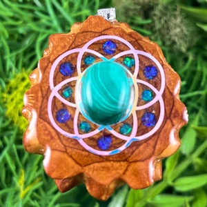 Our handmade pendants are crafted from sustainably wild-gathered Knobcone Pinecones. Every Aura Pinecone is carefully dried, aged, and cross-sectioned before being meticulously designed.