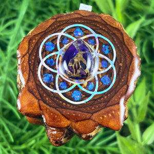 Our handmade pendants are crafted from sustainably wild-gathered Knobcone Pinecones. Every Aura Pinecone is carefully dried, aged, and cross-sectioned before being meticulously designed.