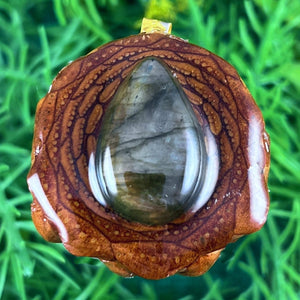 Our handmade pendants are crafted from sustainably wild-gathered Knobcone Pinecones. Every Aura Pinecone is carefully dried, aged, and cross-sectioned before being meticulously designed.