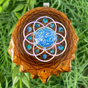 Our handmade pendants are crafted from sustainably wild-gathered Knobcone Pinecones. Every Aura Pinecone is carefully dried, aged, and cross-sectioned before being meticulously designed.